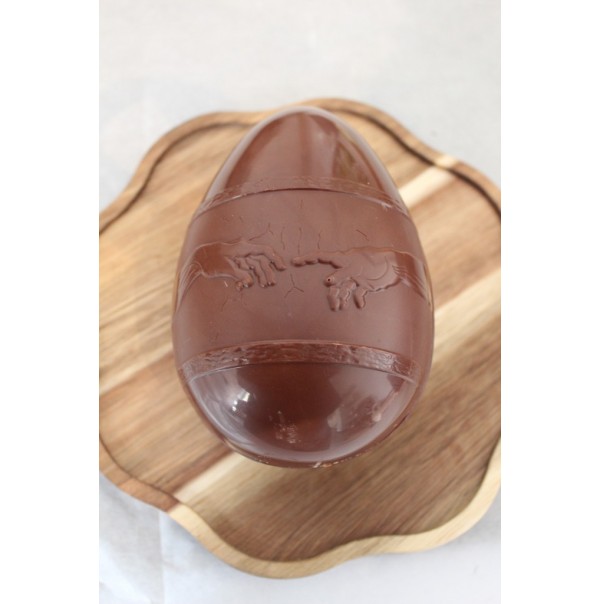 L'Oeuf garni Création du Monde, disponible au chocolat noir d'Haiti 72% ou au chocolat au lait du Cameroun 45%.